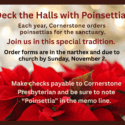 Believe it or not, the Christmas season is coming up fast. Please help decorate our church with Poinsettias during the Christmas season. Order forms are in the narthex and are due by Sunday, November 2.