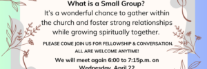 Please join us on April 22 from 6:00 to 7:15pm. What is a small group? It’s a relaxed, welcoming space within our church family where we build meaningful friendships and grow spiritually together. New faces are always welcome! Questions? Reach… Read more »