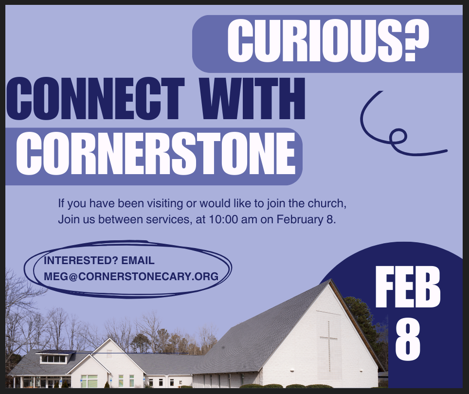 Have you been visiting with Cornerstone? Posted December 21, 2025 by Tricia Cernoch Would you like to know more about the church? Join us February 8 at 10:10 in the library. Rev. Meg will help you get to know more about the church, with an opportunity to become a member of Cornerstone. There will be a light breakfast available.
